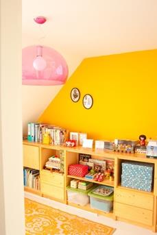 Je kan de kleur op verschillende manieren toepassen. Je kan er voor kiezen om een van de meubelstukken geel te kleuren. De stoel, de kast of het bed van je kind kan veranderen in een zonnige gele oase.