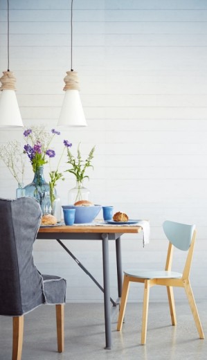Ik ben dol op (delfts) blauw. Dit behang zou ik dan ook erg graag in mijn eigen interieur gebruiken. Ik zou het achter de bank plaatsen of zoals op deze foto achter een kast.