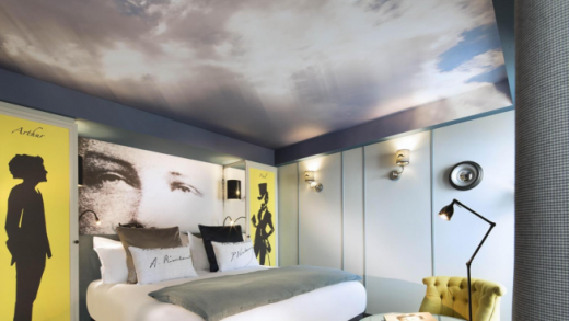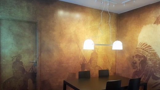 En net als in de meeste restaurants zien we in hotels veel wanden versierd met een print. Zowel als achterwand als plafond.