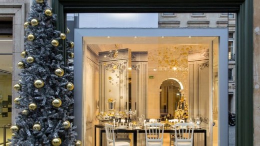 Ook in winkels zien we veel gebruik van prints. Vergrote foto’s van schoenen of kleding stukken versieren de wanden. Het laat je duidelijk zien in wat voor soort winkel je staat. En ook in etalage werkt men met het gebruik van print. Ik vind deze etalage met een Frans tintje erg mooi.