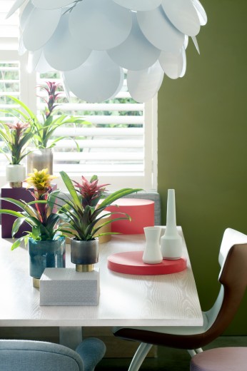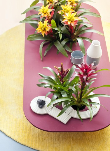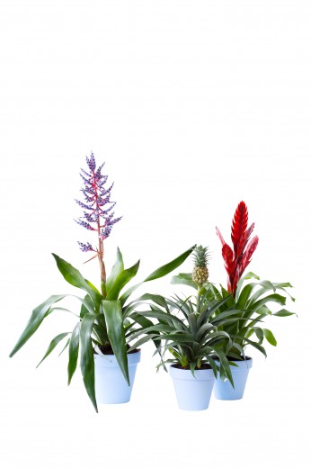 Ondanks dat de ananasplant je het meest in warme vakantie sferen zal brengen, zijn andere leden van de Bromelia familie ook zeker tropisch te noemen. De bloemen aan de planten zijn er in o.a. roze, wit, oranje, rood en geel. In aanloop naar Pasen is de gele natuurlijk erg gezellig. Of maak er een heerlijk tropisch feest van door alle kleuren bij elkaar neer te zetten.