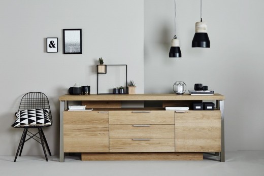 Het mooie van deze serie werkkamer meubels is, dat de bureaus ook te combineren zijn met een bijpassend dressoir. Het Dressoir Selmer heeft dezelfde vormgeving en kan dienen als opbergplek voor je boeken of mappen, maar ook als bijpassend meubel voor bijvoorbeeld je TV in de woonkamer. Ook bij dit meubel komen de robuuste looks terug. Ik ben er helemaal weg van!