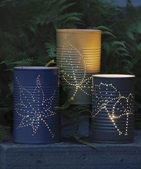 Niet alleen voor bloemen maar ook voor romantisch kaarslicht is het handig om je blikken te bewaren. Met een hamer en een spijker maak je de leukste patronen in het blik.