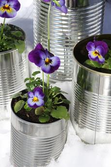 Het is ook erg leuk om planten of kruiden in blikken te zetten. Je kan gewoon de wikkel van het blik afhalen of de blikken verven in een kleur die past bij je interieur.