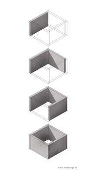 In de tekening heb ik gebruik gemaakt van tegels van 40x60x5cm. Dit principe kan je natuurlijk ook uitvoeren met ander formaat tegels, mits ze genoeg dikte hebben (4-6cm).