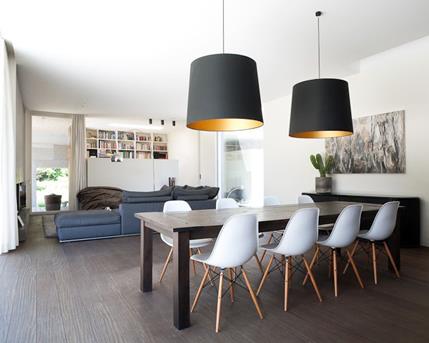 In een modern interieur hoort een strakke vloer. Dit kan een mooie plavuizen vloer zijn maar ook een strakke (warme) houten vloer past hier prima in. Zorg er wel voor dat er niet te veel noesten zichtbaar zijn en ga voor brede planken. Hout kan juist net weer warmte geven aan het interieur.