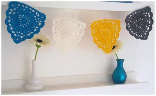 En dan nog een slinger welke je eventueel als je handig bent zelf kan maken. Ben je dat niet dan is deze gehaakte slinger via Etsy ook gewoon te koop.