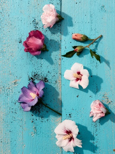 Er zijn honderden Hibiscussoorten variërend van hoge bomen tot kamerplanten. Als terrasplant is Hibiscus verkrijgbaar in struikvorm, op een stammetje en als ‘mini-plant’. Ze hebben allemaal die aandachttrekkende bloemen van wel 12 centimeter in rood, oranje, geel, paars, roze of wit. De spectaculaire bloemen bloeien meestal maar een dag, maar worden non-stop opgevolgd door nieuwe. En dat gaat de hele zomer door!