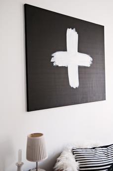 En wat dacht je van zelf kunst maken met een kruisje. Schilder een canvasdoek, kruisje er over en klaar is jouw kruisjes kunstwerk. Simpel maar zo mooi voor boven de bank of je bed.