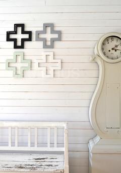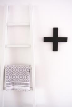 Een andere manier om kruisjes in je interieur te laten terugkomen is om deze aan je wand te hangen. Dit kruis kan je makkelijk zelf maken en verven in de kleur van je woonkamer of slaapkamer. Het kruisje kan je uit een plaatje MDF halen.