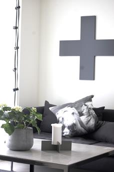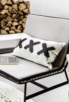 Ik vind het leuk om de kruissteek terug te laten komen in mijn interieur. Bij voorkeur in wit of zwart in combinatie met stoer sloophout.