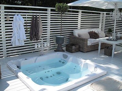 En wat is nu lekkerder dan relax genieten in je tuin. Mijn droom is om ooit nog eens een jaccuzi in de tuin te hebben. Ik vind een jaccuzi echt het ultieme luxe item voor in de tuin. Het geeft je echt een rijk gevoel, alsof je de jackpot hebt gewonnen. En als ik hem dan in de tuin zou zetten zou ik hem ook echt “pimpen”. Er echt een speciaal plekje van maken.