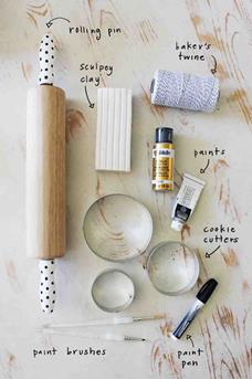 Steek met de uitsteekvorm rondjes of andere figuren, bijvoorbeeld kerstboompjes, uit de uitgerolde klei en bak deze af in de oven. Als ze afgebakken zijn kan je naar eigen wens versieren.