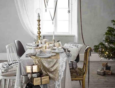 Het huis injecteren met een toefje glamour is makkelijk: voorzie de kamers van wat glitter in de vorm van pailletten, glanzende stof en fonkelende metallics. Goud laat zich voor kerst prachtig combineren met zilver, messing en koper. Met al deze metallic accenten krijgt de gedekte tafel meer allure.