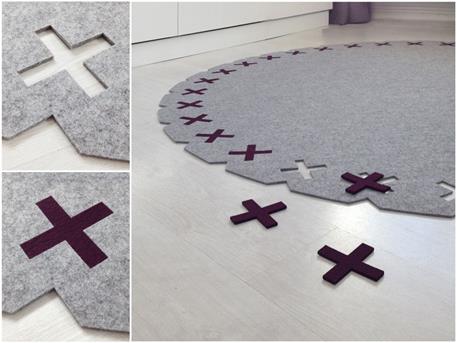 – Het kleed wordt machinaal gesneden waardoor de x-jes strak in de uitsparing passen, hierdoor kun je het kleed gewoon stofzuigen en blijven de x-jes op hun plek zitten.