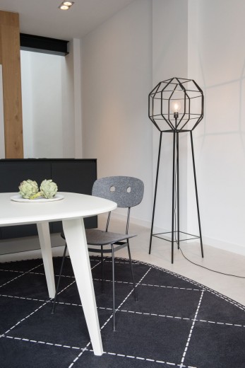 In het ontwerp van vloerlamp Master van Tristan Frencken is zijn waardering voor grootstedelijke architectuur duidelijk aanwezig. De vormentaal, de stalen constructie en het formaat – een hoogte van 175 cm – geven deze lamp een ornamentele waarde. Als een imposant gebouw dat met kop en schouders boven het maaiveld uitsteekt.