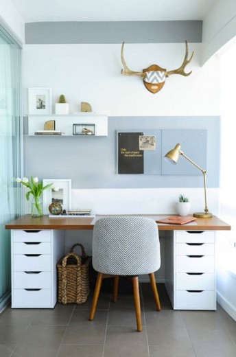 Niet alleen met een overtrek ook met behang kan je een leuk en speels effect creëren. Ik vind deze Dots van Graham & Brown erg leuk om toe te passen in een slaapkamer. En het bureautje geeft mij ook gelijk inspiratie want in mijn nieuwe slaapkamer moet ook een werkplek komen.