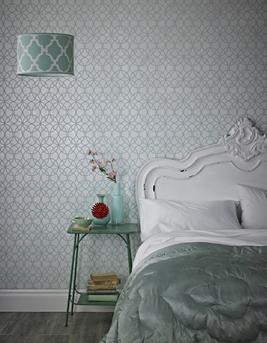 Superfresco Easy heeft een aantal mintgroene dessins in haar collectie: Origin Mint en Cavern Mint. Door de geometrische vormen is het behang een subtiele eyecatcher. Mintgroen laat zich perfect combineren met allerlei andere frisse, zachte kleuren en materialen.
