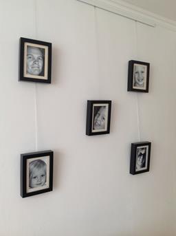 Aan onze muur in de woonkamer heb ik een portretten collage gemaakt. van ons gezin heb ik mooie close up foto’s gemaakt van leuke herinneringen. Veel van de foto’s zijn afkomstig van een dagje speeltuin vorig jaar zomer waarbij de kinderen (en wij als ouders dus ook) enorm vele lol hebben beleefd op de trampoline en met de skelters. Deze heb ik in mooie zwarte fotolijstjes opgehangen aan een schilderijophangsysteem.