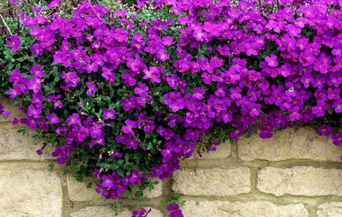 Vroege vaste planten als Aubrieta en Saxifrage komen elk jaar opnieuw tot bloei. Het is bijzonder om te zien met hoe weinig ruimte de wortels vaak genoegen nemen. Behalve in de tuin groeien ze in muurspleten, tussen stenen, langs tuinpaden en natuurlijk in potten en bakken. Maart is een uitstekende maand om muurbloempjes als Aubrieta en Saxifraga te planten. Dat gaat heel eenvoudig: maak een plantgat en stop het plantje erin. Druk nog even goed aan en geef water.