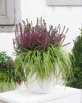 Struikheide (Calluna vulgaris) is een Europese klassieker en komt van oorsprong voor in de kustgebieden van West-Europa, Groot Brittannië en Ierland. De plant groeit in mooie lange scheuten met dakpansgewijze blaadjes en kleine symmetrische bloemen. De paarse en roze bloemkleuren lijken iets verweerd en dat geeft de planten een stoer en natuurlijk karakter. In de volle grond vormen deze planten een winterhard tapijt met een kalme, authentieke uitstraling. In potten en bakken is struikheide een robuuste blikvanger.