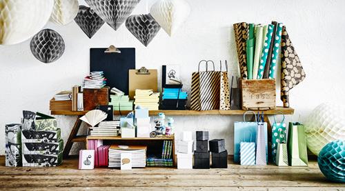 To do-lijstjes maken, je huis versieren of cadeaus inpakken. Laat je creativiteit de vrije loop met de producten uit de IKEA Papershop. Geef je cadeaus bijvoorbeeld een persoonlijk tintje met kleurrijke HISTORISK cadeaulabels. Of verras je gasten met een lieve boodschap door de labels aan een wijnglas te bevestigen. Ook fans van washi tape kunnen in de Papershop hun hart ophalen. Er is een grote collectie tape met verschillende prints en teksten verkrijgbaar. Kinderpartijtje op het programma? Met de ÖVERLÄGSEN 27-delige party set ben je in één keer klaar. Van popcornbekers tot uitnodigingen, snoepzakjes en slingers.