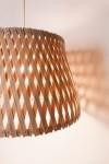 De structuur van de twee over elkaar gelegde lagen hout in het multiplex zorgt ervoor dat het indirecte licht door de vezels van het hout schijnt. Voor sommige modellen zijn onderdelen gestoomd om ze in de juiste schuin over elkaar vallende vorm te buigen. Ook hier zorgt de manier waarop het materiaal is samengebracht voor een sfeervol indirect lichtspel.