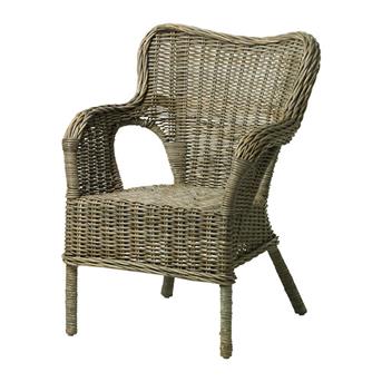 Natuurlijk hoort in er een serre een heerlijk stoel. En bij het behang vind ik rotan wel passen. Het voordeel van rotan de openheid welke het materiaal biedt. Daarbij mag rotan wel verkleuren. Daar wordt het alleen maar mooier van. Als je een stof van stof in een ruimte neer zet waar veel zonlicht binnenvalt zie je toch al snel verkleuring van je stof en dat maakt het meubel er vaak niet mooier op. Met rotan heb je dat probleem niet.