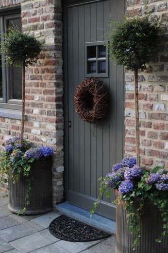 Potten gevuld met planten en bloemen vullen je welkom mooi aan. Je kan ze ophangen, maar vooral bij de voordeur is het leuk als je daar een paar grote plantenbakken of bloempotten neerzet. Plaats hier een boom in en vul deze op met mooie bloeiende planten. Het leuke is natuurlijk om deze elke keer met de bloemen van het seizoen te vullen. Viooltjes in het voorjaar en een chrysant in het najaar. Natuurlijk staat een hortensia ook altijd erg mooi bij de voordeur. Hou je niet van bloemen dan kan je hem vullen met bijvoorbeeld buxussen of een olijfboom. Zorg wel dat je de olijfboom bij te lage temperaturen inpakt of binnen zet.