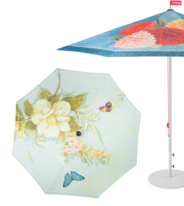 Fatboy introduceert twee splinternieuwe parasols die passen in elke weelderige tuin of stedelijke omgeving. De opvallende patronen van de Parasolasido en Bouqetteketet zijn speciaal voor Fatboy ontwikkeld door de Nederlandse grafisch ontwerpster Saskia van der Linden. Het resultaat is een vintage, romantische en poëtische look.